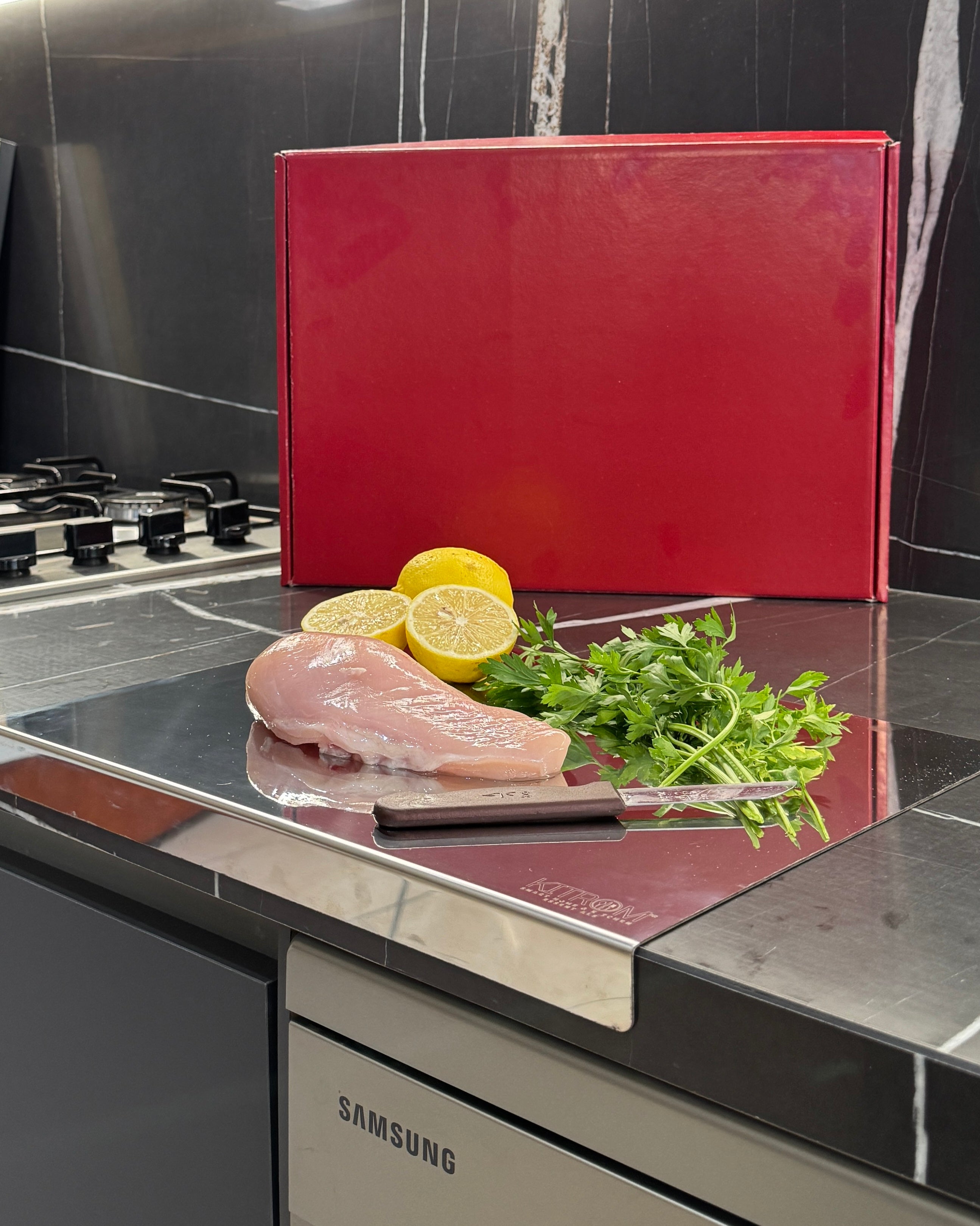 Optez pour la planche à découper en Inox 304 Originale de KITROM 💎 — le choix parfait pour une cuisine propre, saine et moderne 🍽️.